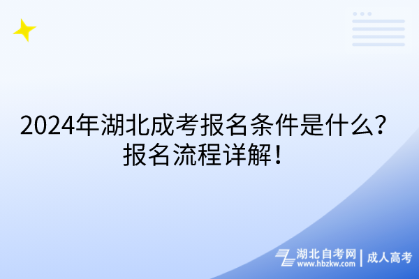 2024年湖北成考报名条件是什么?如果同学们打算报考今年的湖北成人高考,那么了解报名条件就是第一步。今天老师为同学们收集了报名条件的全部内容,并且为同学们解答报名全部的流程,还不了解同学们快来看看