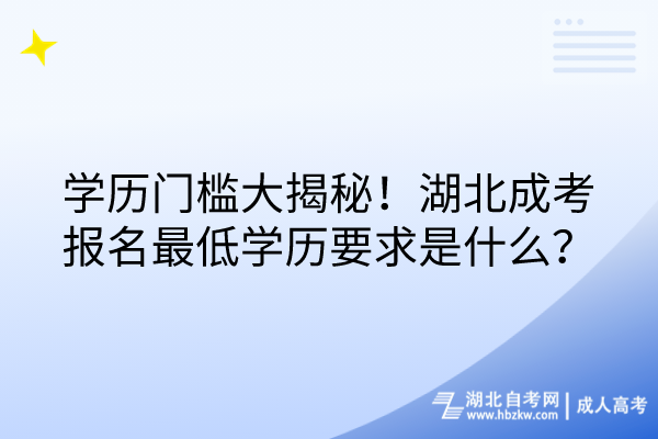 应该有不少人了解过成考,知道成考主要是面向已经参加工作的人招生的,能够帮助大家提升学历。很多人想知道湖北成考报名最低学历要求是什么?如果参加成考只有初中学历可以报名吗?今天老师会给大家详细解答这些疑问,如果你符合参与的条件,可以报名试试哦!