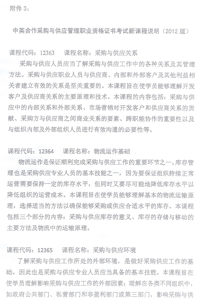 2013年中英合作采购与供应管理职业资格考试计划调整