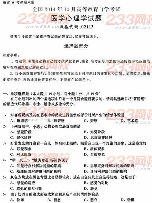 "2014年10月医学心理学自考真题" 相关文章推荐