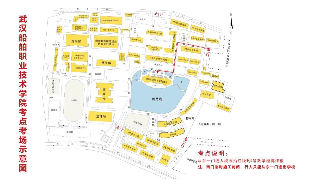 2.打车可定位“武汉船舶职业技术学院东1门”,到达目的地后凭考试通知单走人行通道步行进校。