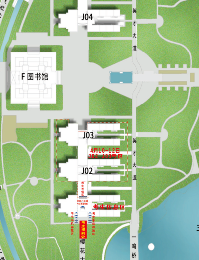 江汉大学主校区J02教学楼、J03教学楼(学校地址:武汉市经济技术开发区三角湖路8号)